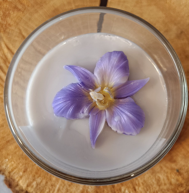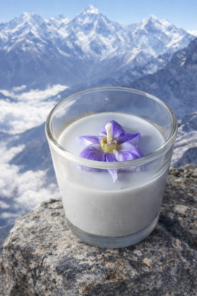 Au cœur de la bougie se trouve une fleur de dendrobium, moulée à la main. Associée à la clarté d’esprit et à l’apaisement, cette fleur évoque les paysages minéraux et paisibles des montagnes de l’Himalaya, où l’air est plus léger et le rythme plus lent. La fragrance est subtile et équilibrée : un parfum floral légèrement poudré, idéal pour une bougie parfumée de détente.